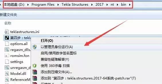 22.粘贴到软件安装目录(例D:\Program Files\Tekla Structures\2017\nt\bin)右健以管理员方式打开