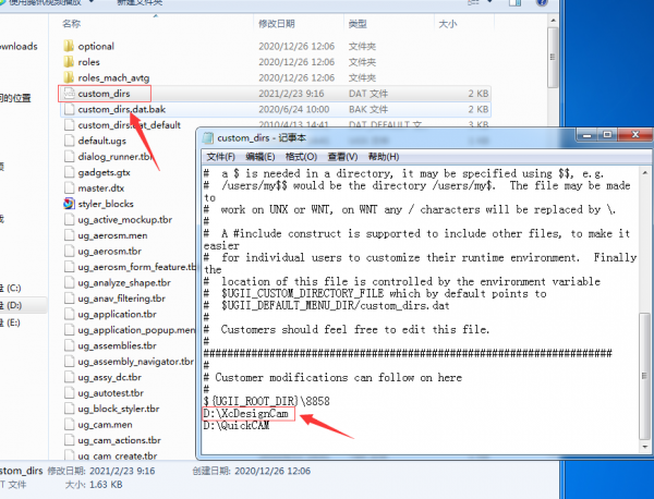 第二步:把星创安装路径“ D:\xcDesignCam ”复制。再把各个版本的UG安装目录 D:\Program Files\Siemens\NX 8.5\UGII\menus\里的“ custom_dirs.dat ”文件,