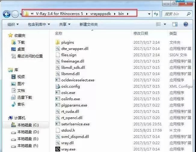 12.如果是默认安装路径,就打开安装目录“C:\Program Files\Chaos Group\V-Ray\V-Ray 3.4 for Rhinoceros5\vrayappsdk\bin”