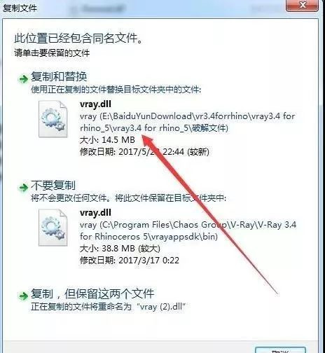 13.粘贴刚刚复制的破解文件vray.dll,选择复制和替换