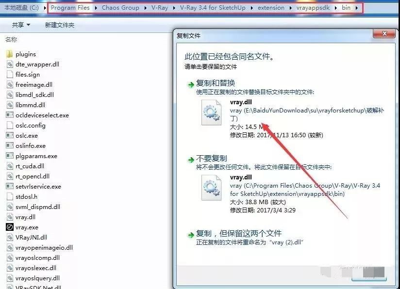 17.打开Vray目录,粘贴刚刚复制的文件,选择“复制和替换”