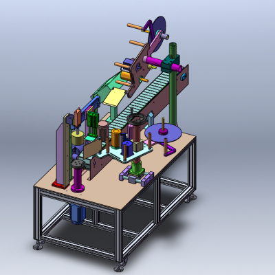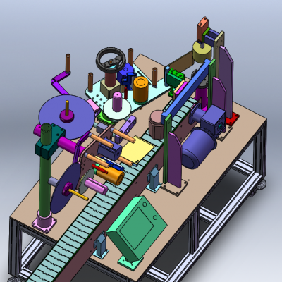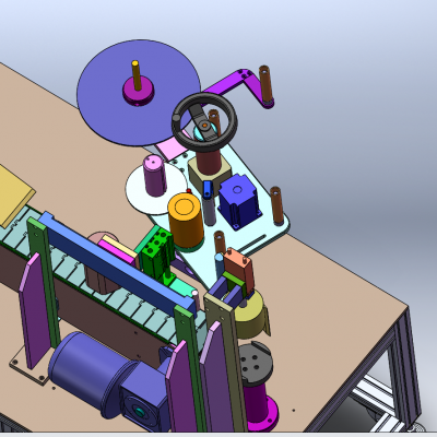 包装贴标机3D模型,SW设计,其中零件中文命名,好查找,打包后30M大小,建议使用SolidWorks2012以上版本打开!该模型可以进行编辑,包含参数,模型创建效果逼真,适合用于设计参考,结构设计的非常不错,可以下载学习设计思路的运用。