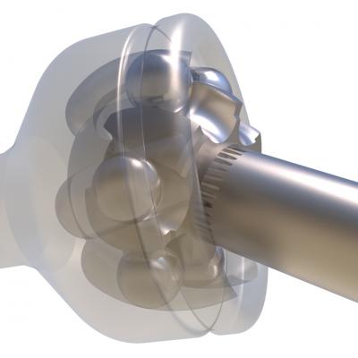 3/4浮式半轴最突出的结构特点是半轴外端仅有一个轴承,轴承支承着车轮轮毂。由于一个轴承的支承刚度较差,因此,这种半轴除承受转矩外,还要承受因车轮与路面间的垂直力、驱动力和侧向力所引发的弯矩作用。3/4浮式半轴在汽车上应用很少。