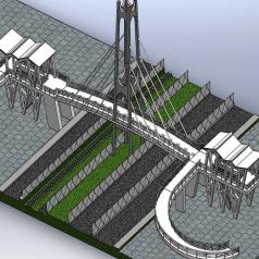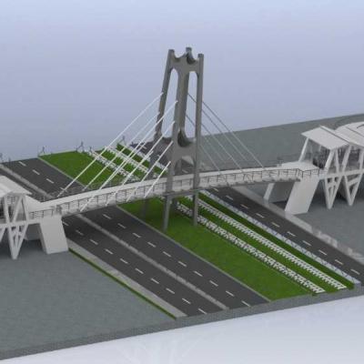 人行天桥又称人行立交桥。一般建造在车流量大、行人稠密的地段,或者交叉口、广场及铁路上面。人行天桥只允许行人通过,用于避免车流和人流平面相交时的冲突,保障人们安全的穿越,提高车速,减少交通事故。