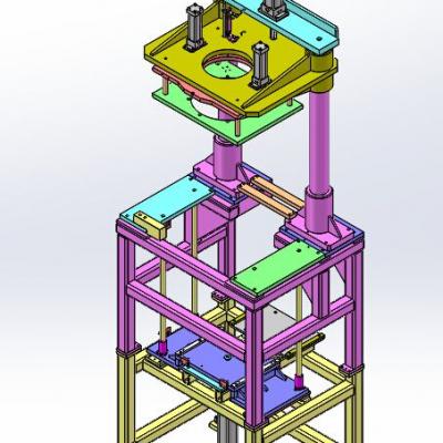 压力测试机,有型材框架,夹具系统,四个气缸等组成,上下工作台都能上下推动夹具运动,适合不同工件的测试。欢迎下载!