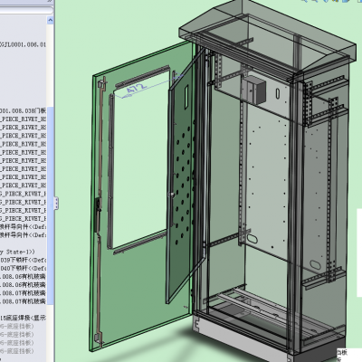 靠墙户外电控柜是单面靠墙防护等级IP54的开关柜,该柜体装配户外靠墙,是SW设计 提供源文件分享。