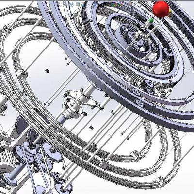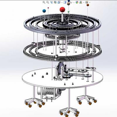 机械结构模拟太阳系行星运动3D模型是由从动链轮、大带轮连辅传动轴、上盘支撑杆、同步带、万向轮、圆锥齿轮19×2、链条、齿轮轴套等等上百个零件组成。SW设计,全部源文件分享!我只想说两个字:超赞!!!!