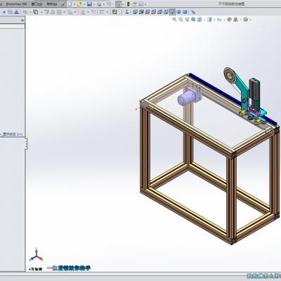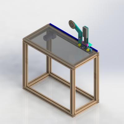 不干胶贴胶机3D模型,设备结构简单,明确,使用Solidworks2014软件建模而成,结构包括了铝型材,直线导轨,同步轮,气缸等组成,内包括装配图与零件图,工作台面采用玻璃,零件图有详细建模过各程,含参数,可以修改。