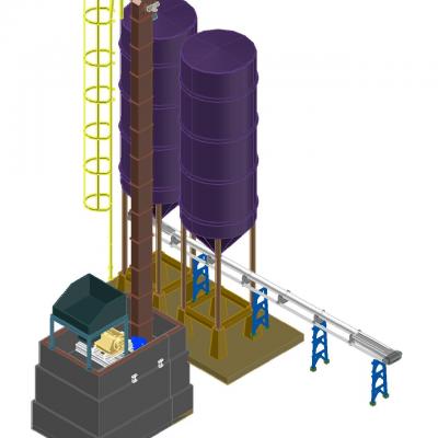 原材料储存设备3D模型 是由储存罐和支架平台组成!