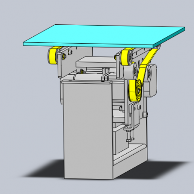 分支:托盘到达同步齿形带上时,皮带机构上升,使托盘从传送带上浮起,并通过同步齿形带的动作将托盘移动到其他传送带上,皮带机构下降。