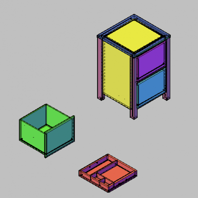 各个组件组合起来的三维图,就算不从事该家具行业的人,也会很清楚地明白怎么组装成一个文件柜家具。