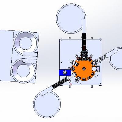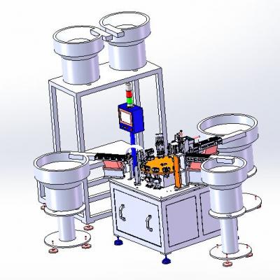 洗发水瓶盖子组装机3D模型,该设备是一组装行业自动化设备,组装家用洗发水盖子产品。凸轮分割器实现圆周分度,机械手抓取产品到分度盘的工装中,进行组装工艺,此设备含有很多经典机构,适合参考和学习。