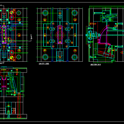 14、图面的整理﹐包括剖切符号﹐哥林柱的插入﹐胶口的放大图﹐顶针表﹐排气槽﹐图框的放入﹐MARK表的填写等。