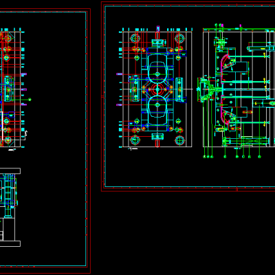 14、图面的整理﹐包括剖切符号﹐哥林柱的插入﹐胶口的放大图﹐顶针表﹐排气槽﹐图框的放入﹐MARK表的填写等。