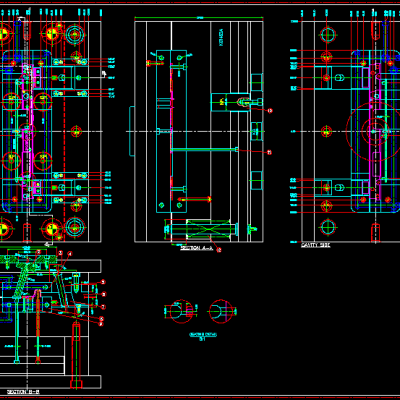 14、图面的整理﹐包括剖切符号﹐哥林柱的插入﹐胶口的放大图﹐顶针表﹐排气槽﹐图框的放入﹐MARK表的填写等。