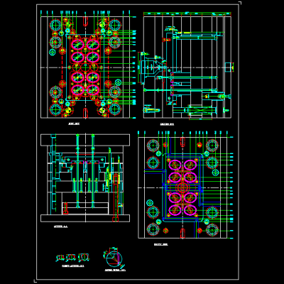 14、图面的整理﹐包括剖切符号﹐哥林柱的插入﹐胶口的放大图﹐顶针表﹐排气槽﹐图框的放入﹐MARK表的填写等。