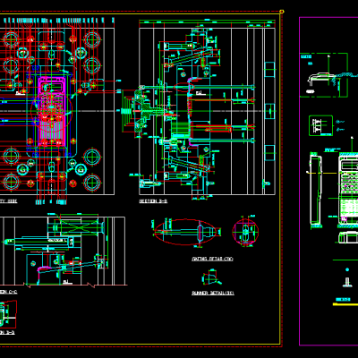 14、图面的整理﹐包括剖切符号﹐哥林柱的插入﹐胶口的放大图﹐顶针表﹐排气槽﹐图框的放入﹐MARK表的填写等。