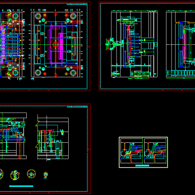 14、图面的整理﹐包括剖切符号﹐哥林柱的插入﹐胶口的放大图﹐顶针表﹐排气槽﹐图框的放入﹐MARK表的填写等。