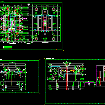 14、图面的整理﹐包括剖切符号﹐哥林柱的插入﹐胶口的放大图﹐顶针表﹐排气槽﹐图框的放入﹐MARK表的填写等。