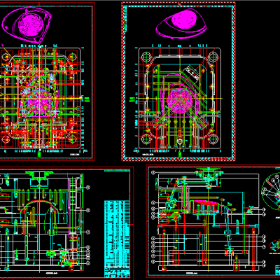 14、图面的整理﹐包括剖切符号﹐哥林柱的插入﹐胶口的放大图﹐顶针表﹐排气槽﹐图框的放入﹐MARK表的填写等。