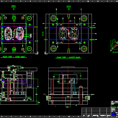 14、图面的整理﹐包括剖切符号﹐哥林柱的插入﹐胶口的放大图﹐顶针表﹐排气槽﹐图框的放入﹐MARK表的填写等。