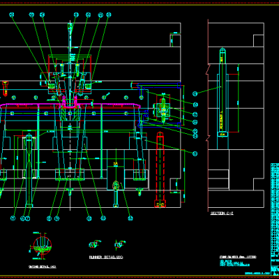14、图面的整理﹐包括剖切符号﹐哥林柱的插入﹐胶口的放大图﹐顶针表﹐排气槽﹐图框的放入﹐MARK表的填写等。