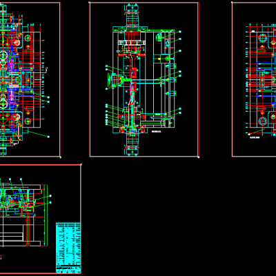 14、图面的整理﹐包括剖切符号﹐哥林柱的插入﹐胶口的放大图﹐顶针表﹐排气槽﹐图框的放入﹐MARK表的填写等。