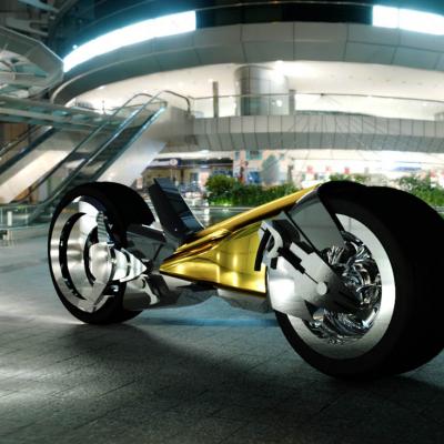 一款非常独特的摩托车3D模型,拥有个3轮胎~前面两个,后面一个(无轮毂设计),
