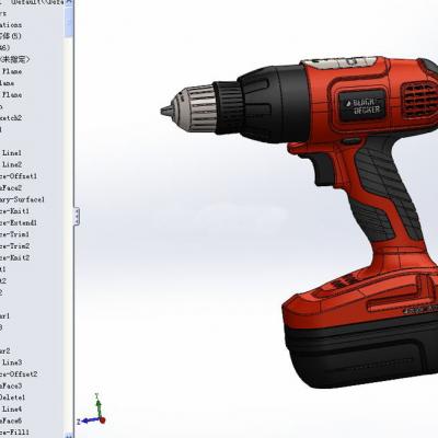 百得(black decker)充电钻/起子3D模型,Solidworks设计,图纸有特征数据,有零件图和装配图。
