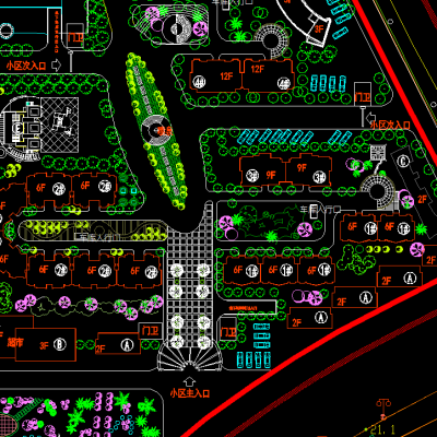 图纸简介:本下载图纸是一套小区规划平面图CAD图。图纸包含了小区主入口、次入口、喷泉、网球中心、地下车库入口等。图纸仅供参考,欢迎下载。建议用cad08版本以及以上版本打开。