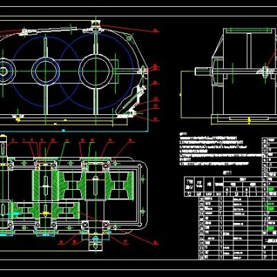 二级展开式圆柱齿轮减速机装配图及部分零件图.dwg