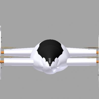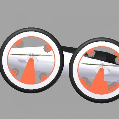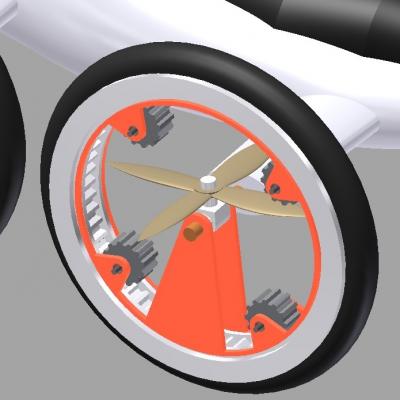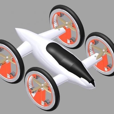 陆地系统:通过车身的4个大直径轮子带动飞行车行走,每个轮子由一个独立马达驱动,这样做既保证了强大的动力支持,也可通过车内微电路的控制来改变同一轴向的两个轮子的转速从而达到灵活转弯甚至原地转弯的目的。并且在车前内置了小型摄像机可以实时转播前方路况。
