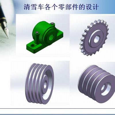 2.设计出了该种清雪设备,对传动方式进行了计算,对部分零件进行了校核和寿命计算,并进行了三维建模和工程图的绘制,确定了其基本参数,确定了各个零件的尺寸和配合。采用solidworks软件,建立了小型手推式清雪车的三维实体模型和相的二维工程图。
