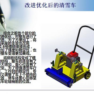 4.通过对小型清雪车的进一步研究和完善,为以后生产出更适合中国情的小型清雪设备奠定了基础。