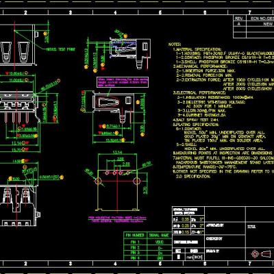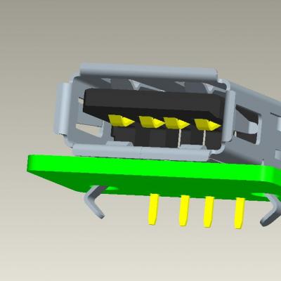USB2.0连接器 USB2.0 AF 90度 短体 L=13.5,有CAD图纸,stp3D模型。