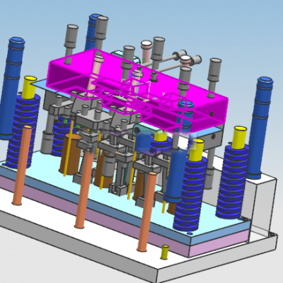 小匝扣模具,螺丝孔、顶针处并未修剪,只设计了结构