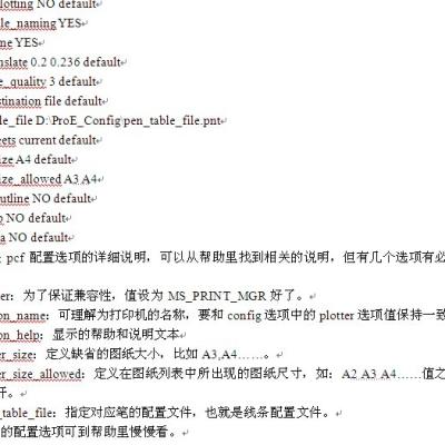 pro_plot_config_dir指定的配置文件目录,Pro/E会在打印启动时到这个目录寻找打印机的配置文件并从这些配置文件中找出所有可用的打印机并添加到打印机列表中以供用户选择。