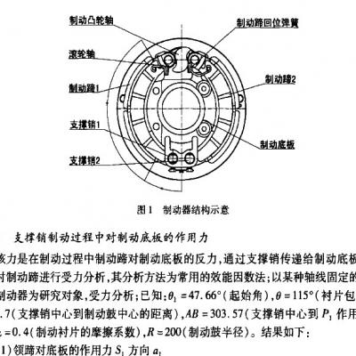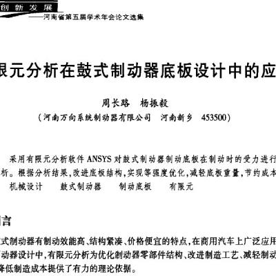 鼓式制动器有制动效能高、结构紧凑、价格便宜的特点, 在商用汽车上广泛应用。在汽车制动器设计中, 有限元分析为优化制动器零部件结构、改进制造工艺、减轻制动部件重量, 降低制造成本提供了有力的理论依据。