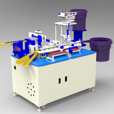 一款非标自动化铁扣组装机3D模型分享,SolidWorks2012文档+XT通用文件+AutoCAD文档,源文件无参数 但可编辑。铁扣为我们日常工具箱和行礼箱的钣金件上穿一个C形钢丝。该款自动装铁扣机、铁扣装配机3D模型,模型结构完整,很少见的,大家可以参考。