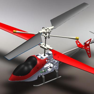 玩具类的直升机模型,遥控飞机操作方法将遥控飞机上的开关拨为"ON",飞机接收板指示灯会闪亮约2秒常亮。将遥控器开关拨至"ON"上。 英文版SolidWorks2014源文件 有参数 可编辑。