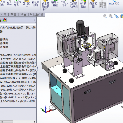 一款非标自动化设备:自动化链轮齿轮去毛刺设备3D模型,SolidWorks2011设计源文件提供,包含参数、可编辑。还有全套工程图+齿轮去毛刺机图纸发行清单BOM.xls。这是一套耀威齿轮去毛刺设备,主要是用于齿轮等产品的去除毛刺工作,一套用于齿轮加工的非标自动化设备图纸完整,压缩包内有工程图和清单由于希望大家能够更好的学习和下载到最完整和最想要的图纸所以能下载这么完整的也是非值的,这套加工齿轮的图纸上下两个打磨抛光头进行加工,齿轮链轮抛光去毛刺机器结构设计完美欢迎大家下载。外观采用铝型材做的框架,漂亮,欢迎非标自动化行业同仁下载参考。