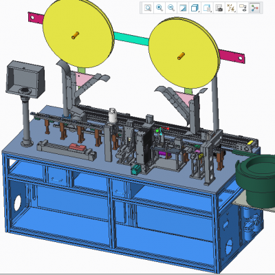 一款非标自动化插件机:插pin裁切机3D模型【总装图文件:asmchapin.asm】ProE4.0源文件提供,可进行编辑,含参数,此套插pin裁切机,结构庞大,涉及到的机构众多,其中有很多经典机构,比如切料,步进送料,杠杆加力等,模型共446文件和一个STP格式总装图,此设备是电子行业的必备设备有极高的参考价值,欢迎下载学习。
