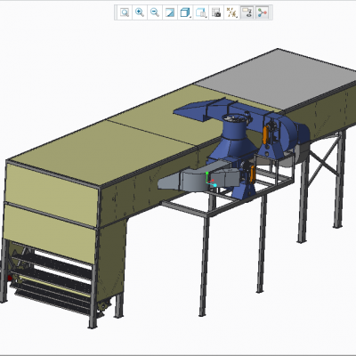 隧道式干燥机设备3D模型 proe5.0文档,无参数 但可编辑。 隧道式烘干机是连续式烘干设备,可持续不间断地烘烤,提高产品生产效率。双边配有链条传动,解决运输过程中跑偏的现象。烘箱分段式加热,独立电箱控制、操作方便。结构主要由输送机系统与烘干炉两大部分组成。多段独立PID温度控制,炉内温度均匀。输送速度变频 调速,调节自如,运行平稳,生产效率高。