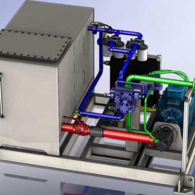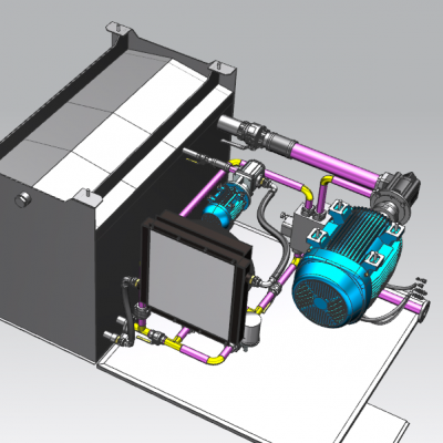 液压动力装置、液压泵站3d模型,UG NX8.0设计文档提供。液压泵是液压系统的动力元件,将电动机或其他原动机输入的机械能转换为液体的压力能,为执行元件提供压力油。