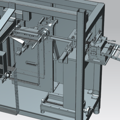 一款编篮机3D模型 就是编篮子机器,UG8.0设计,编篮机将铁线整卷放入铁线架上,取一头线头穿入弯型机的指定孔位上,按网罩产品的规格设置好线长度、条数、折弯弧度、产品数量,开启开关弯型机可一次性自动完成线材调直、切断线材、折弯三个工艺。