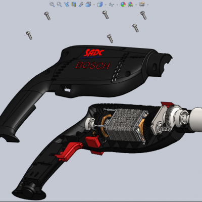 BOSCH博世牌手电钻,博世手电钻Solidworks 2012教育版设计3D模型,sldasm﹑sldprt源文件提供 有参数可编辑,设计详细。手电钻(手枪钻)——用于金属材料、木材、塑料等钻孔的工具。当装有正反转开关和电子调速装置后,可用来作电螺丝批。有的型号配有充电电池,可在一定时间内,在无外接电源的 情况下正常工作。