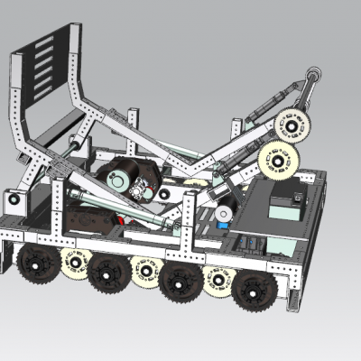 电路板控制移动机器人3D模型 UG8.0文档,无参数可编辑。此款机器人的设计还延续了过去机器人的设计理念,采用电路板控制,大量的齿轮传动系统等,运动起来比较笨重。