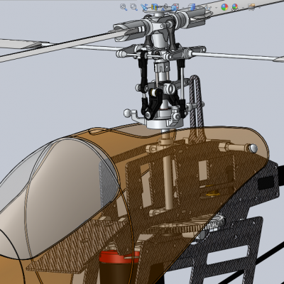 250级遥控直升机3D模型 Solidworks 源文件提供。 电动直升机主要设备包括,3个斜盘舵机,1个标准油门舵机,1个锁尾陀螺仪和1个锁尾舵机,主电机,供高能电池,电子调速器,2合1降压器,接收机,发射机。