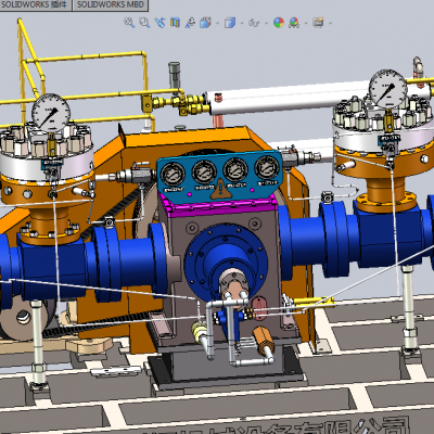 该大型隔膜压缩机3D模型采用SolidWorks2014设计,源文档提供,有参数可编辑。GDS115系列隔膜压缩机的结构组装很复杂,包括:箱体过滤器部件、压力表组件、油压仪表组件、箱体部件、气压仪表管路部件、调压阀部件、放气阀部件、吸气阀配件、缸体单向阀组件、大V带轮、溢流阀部件、呼吸器、膜片报警器、油冷器部件、过滤器装配体等等超多 超详细的设计,只有打开才能看到 是多么强大。