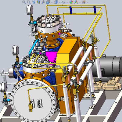 一款超级帅气的量产设备:GDS115隔膜压缩机3D模型,是全套图纸,整个体统完善的特别漂亮。隔膜式压缩机作为一种容积式压缩机,由其结构特性决定其具有两大特点:压缩比大、密封性好,它被广泛应用于压缩输送各种高纯气体、贵重稀有气体、有毒有害气体和腐蚀性气体,它作为一种不可替代的容积式压缩机将随着科学技术的进步与发展以及人民生活水平的不断提高将会有更加广泛的应用。隔膜压缩机的主要应用领域为:航空航天、核电核能、食品医药、石油化工、电子工业、材料工业、国防军工和科学试验等行业部门。